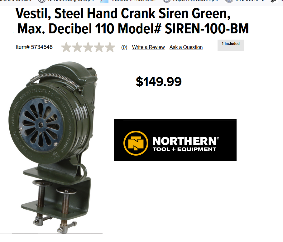 I would like to find a small hand crank Siren for my 1914 WW 1 ambulance. Send e-mail and picts with price. Thanks, Dennis