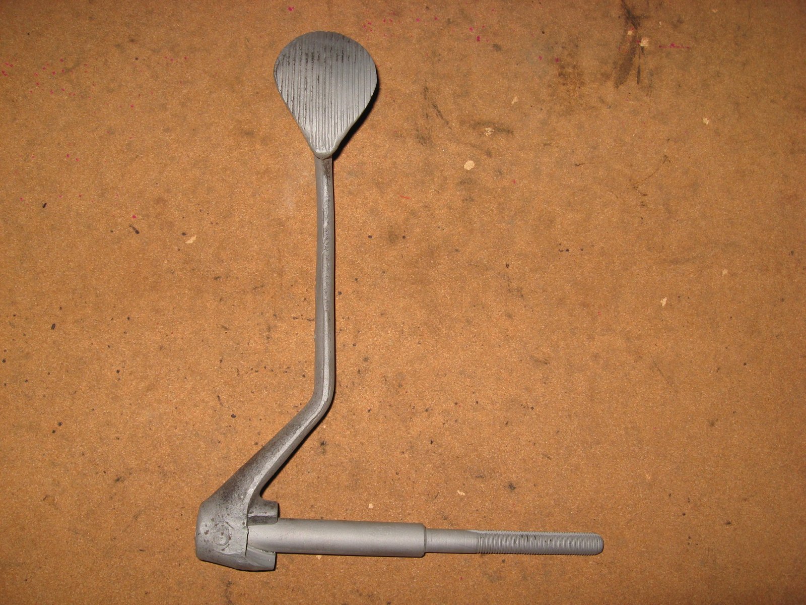 I have a 1915 ribbed brake pedal for sale. It is in pretty good condition. There is a little wear to the shaft and notch, I have tried to show it in the photos. Threads and keyway are very good. Overall, it is in better than most condition. I would have no problem with using it as-is.