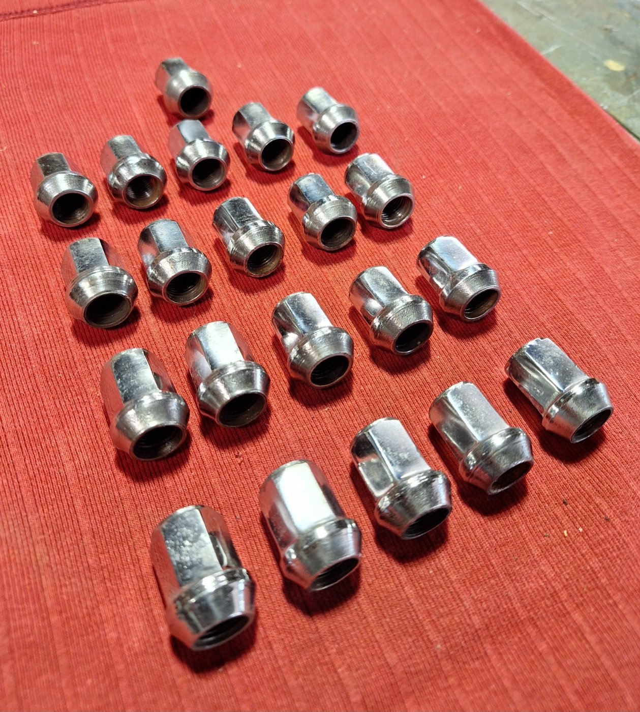 21 original Lug nuts, re-polished and re-chromed. I had these done for my speedster but never did get around to swapping them over before I sold the car.