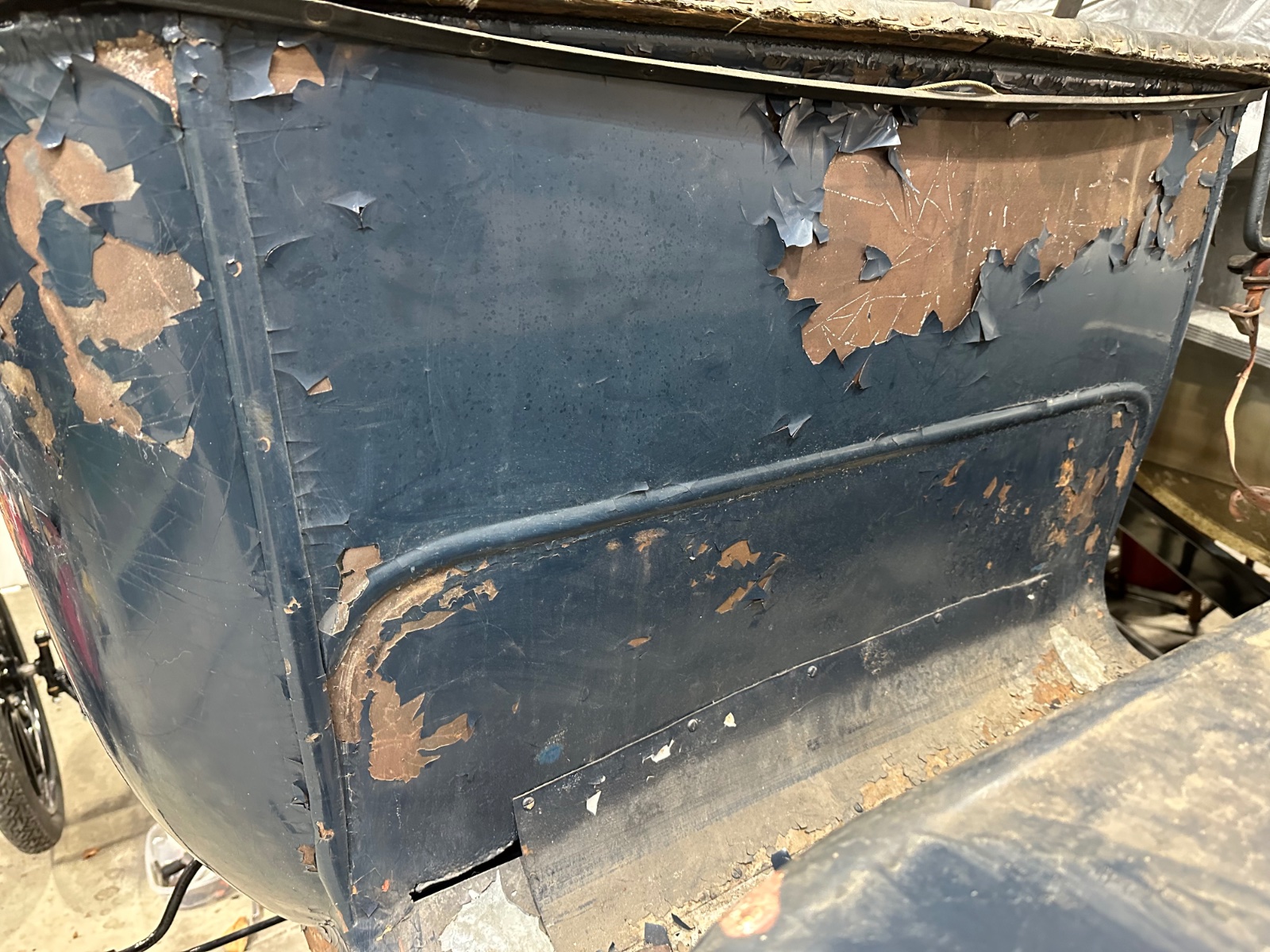 WTB Outside body moldings for a 1914 Ford Model T Roadster. These moldings mount on the back of the body and "curl" down following the lines of the turtle deck just below the deck. The moldingd appear to be solid steel and mounted on the body via screws. any help would be greatly appeciated