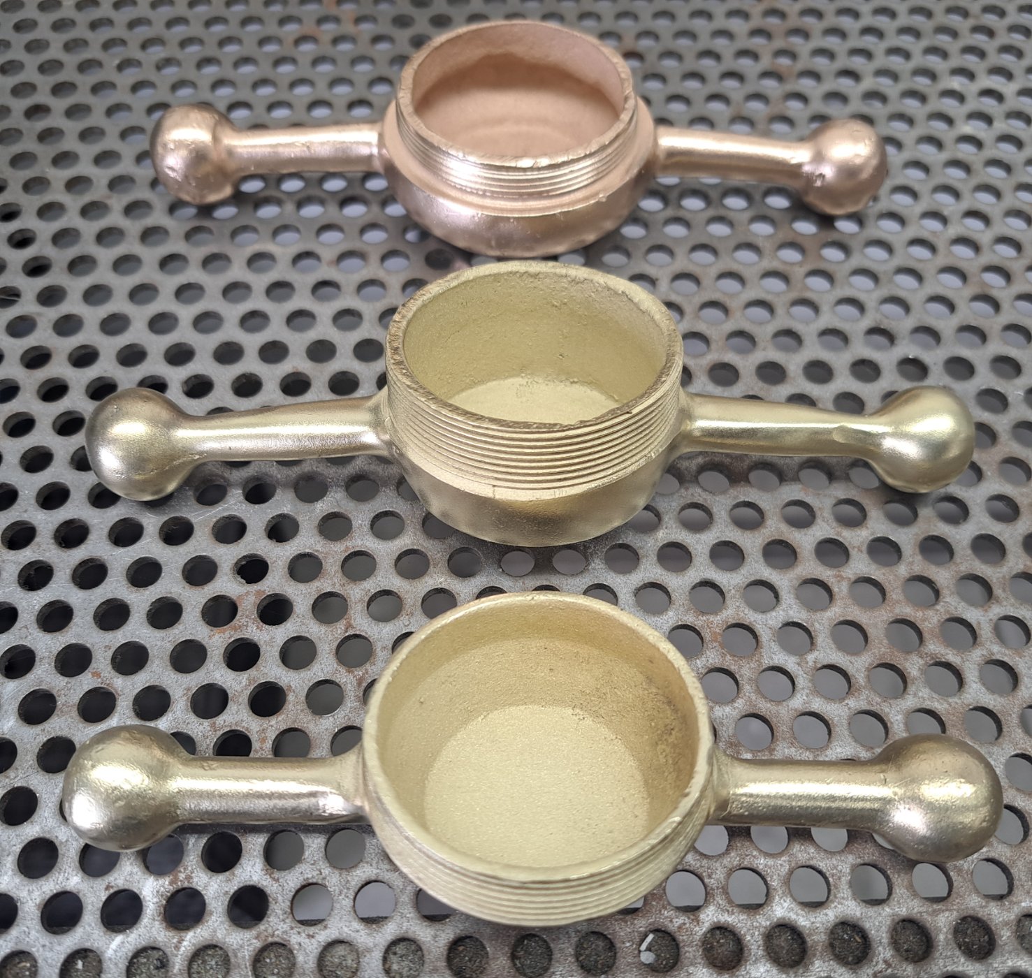 Three brass dog bone style radiator caps sold as one lot. Price is $35.00 plus $8.50 domestic shipping. Mark Chaffin (951) 805-0928 [*]SOLD