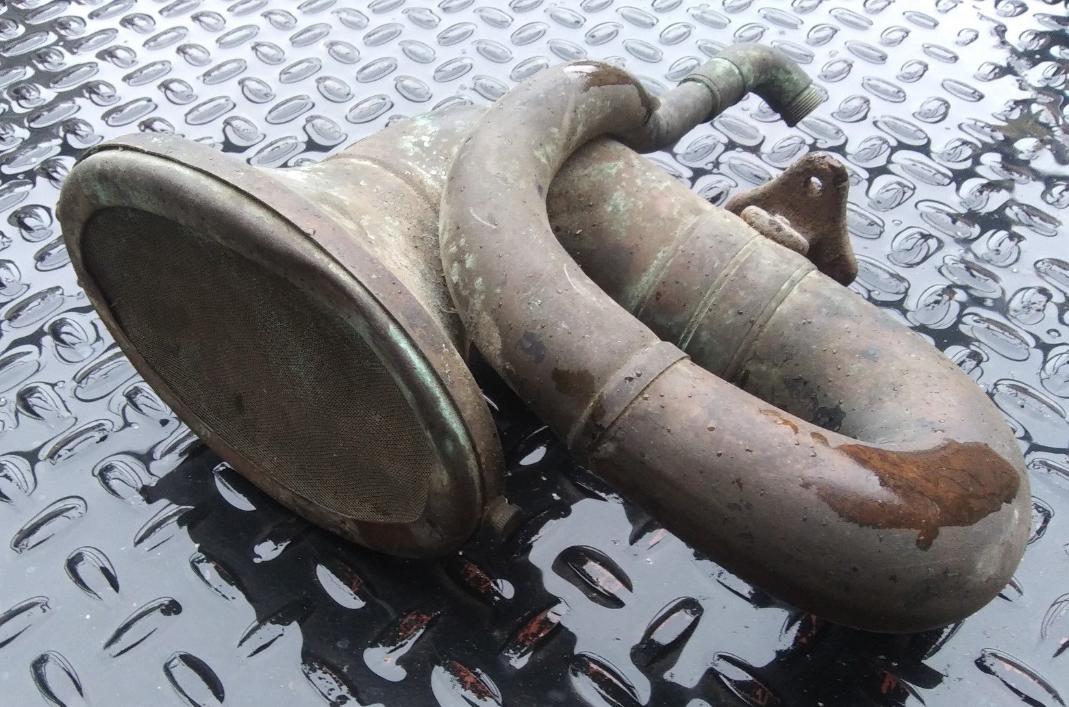 SOLD: Early 1915 Brass Bulb Horn with Rare Elbow Connection