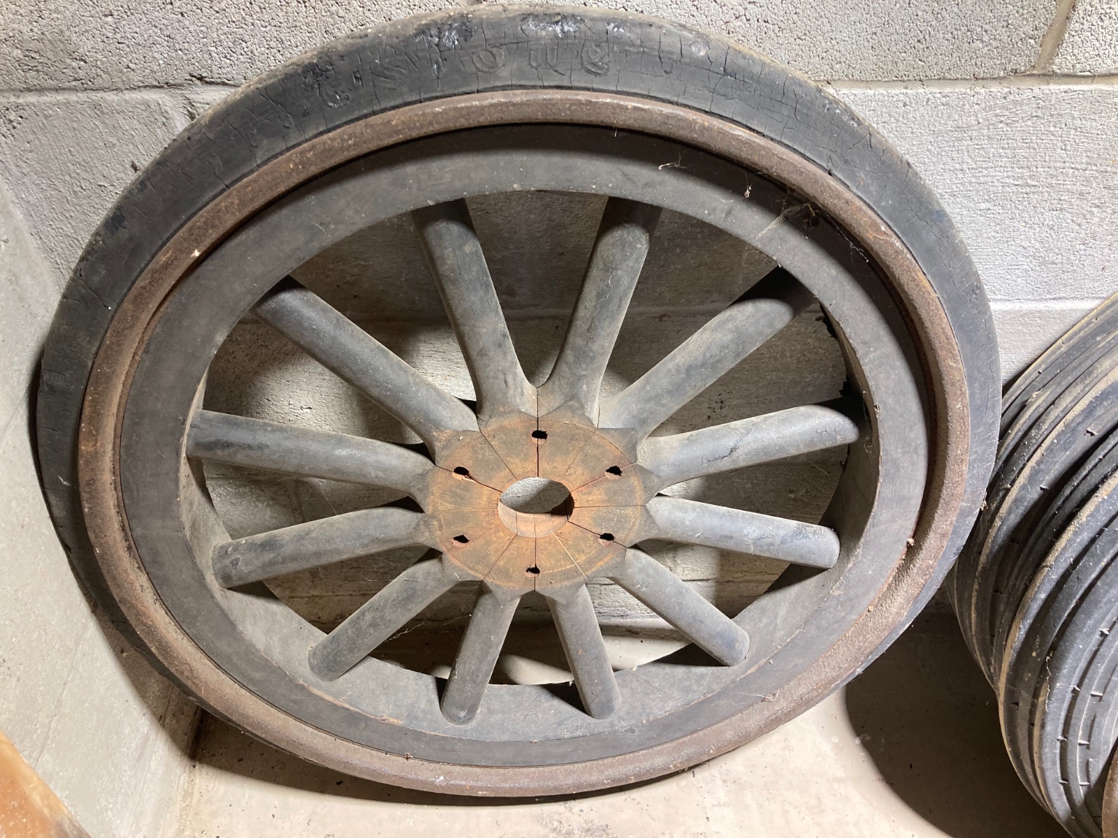 For sale: 32 x 3-1/2 TT solid rear wheels. Rare to find in this condition!! Made by Firestone in Akron Ohio. One wheel is complete and one is missing the hub and brake drum. The wood in both wheels is very very nice and solid, no rot at all, not loose either. Both are still in what I believe to be original paint. The rubber is not dry rotted and is in good condition also. Great addition to your heavy hauler TT or as an accessory to your model T shop! Located in north east Ohio, local pick up only $600 for the pair.