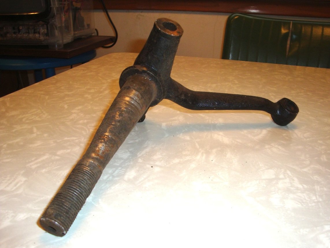 My spindles should have straight arms but I've come to the conclusion that someone bent them to use them on a later axle. The bends aren't quite uniform when comparing the two spindles.