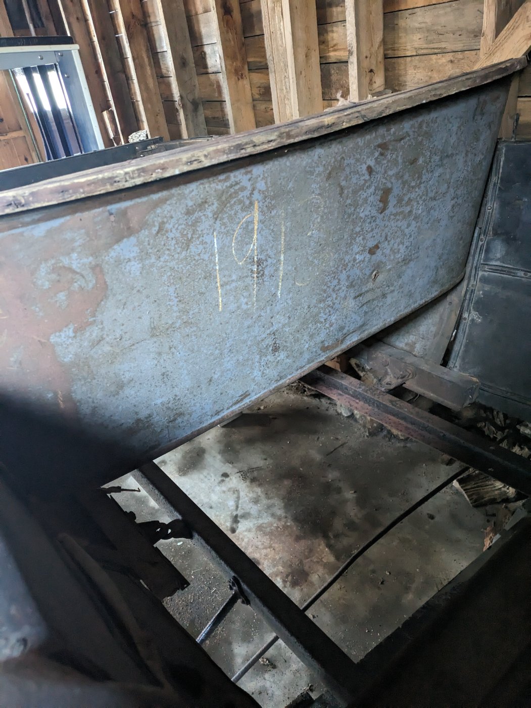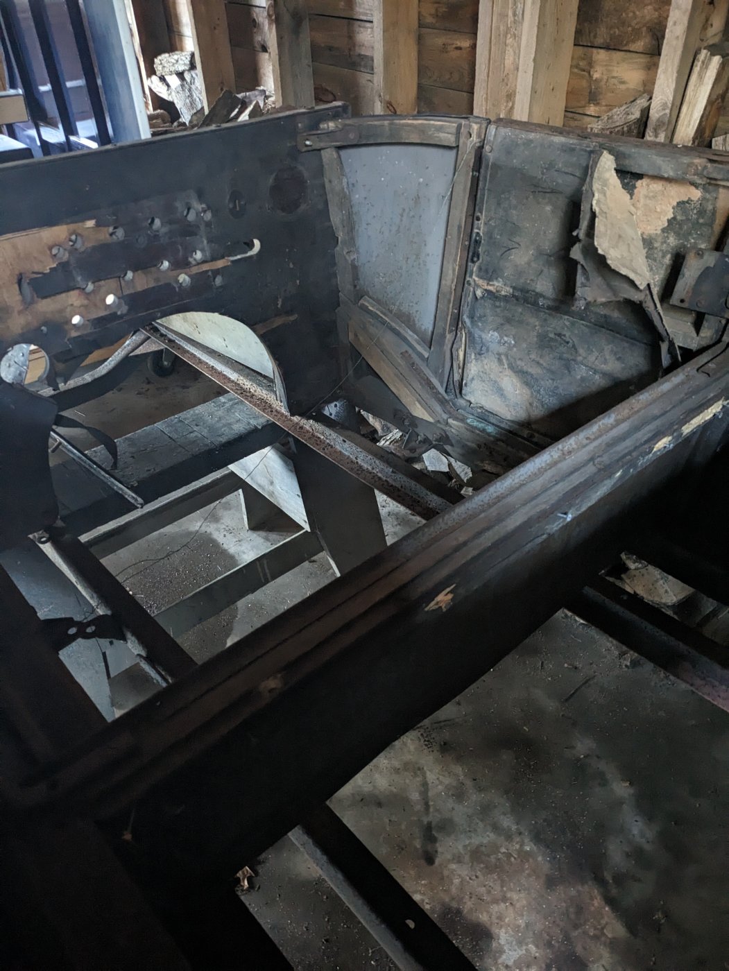 Found under the stairs in an old farm house here in Maine.. metal is in good condition only light surface rust.. the body wood is good. The body rail will need to be repaired.. it was made into a truck some time ago.. the rear doors and seat still have the original upholstery.. the body isn't beat up pings and dings.. nice metal. Sits up on a 14 - 20 frame with vast running board brackets. Has all the body brackets for the top.. has a hood and hood former ( fair condition )... Pair of running board on good condition.. has all door latches and still are working.. and a pair of rear fenders..has a pair of firewall brackets as well...pm me or call for more info.. located in southern Maine.. asking $2100.00..