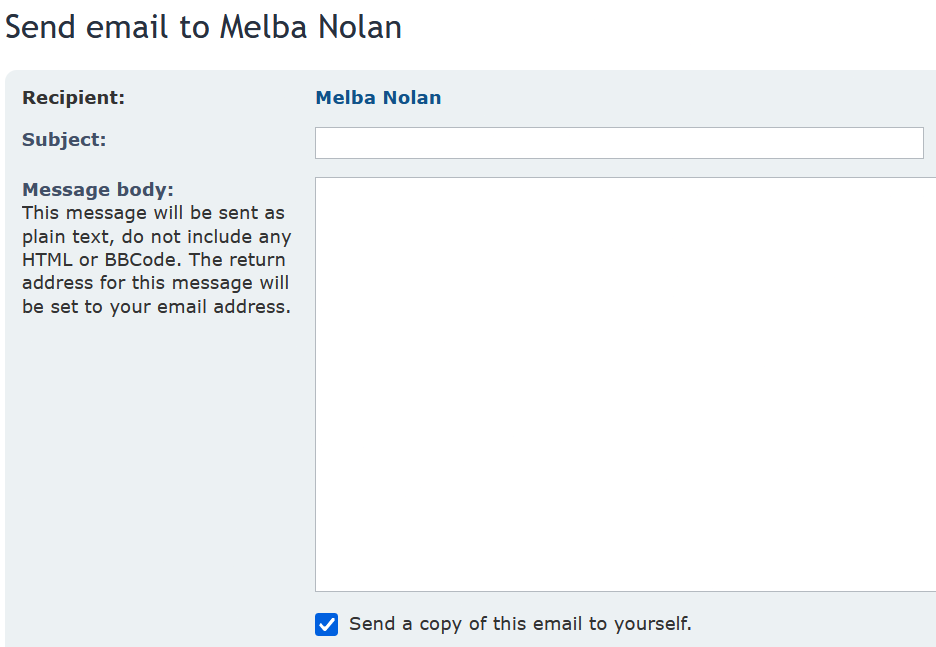 Just clicking on the Username, then send email address provides a screen to send message text (subject & message)
