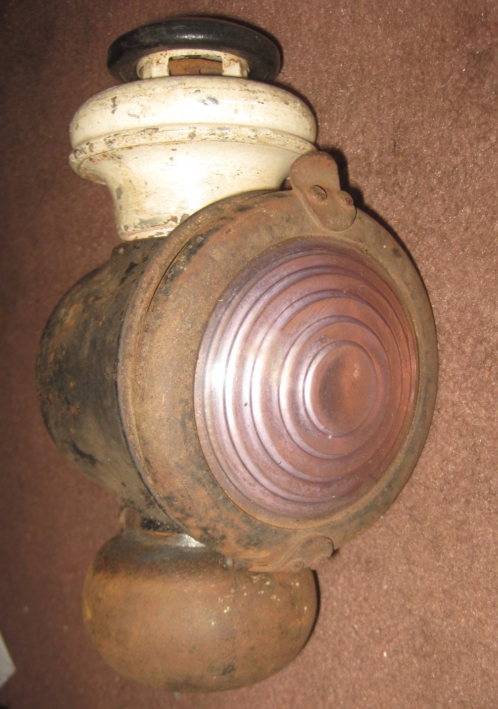 #2. A Brown "Ford-O" tail lamp with good lenses, fount and burner, with the "Ford-O" script on back. No major rust issues, but the chimney doesn't seem to fit right. May be a hodge-podge of parts from various manufacturers. Someone welded an extension to the mounting stud, and did a lousy job of it. Asking $30, not including shipping.