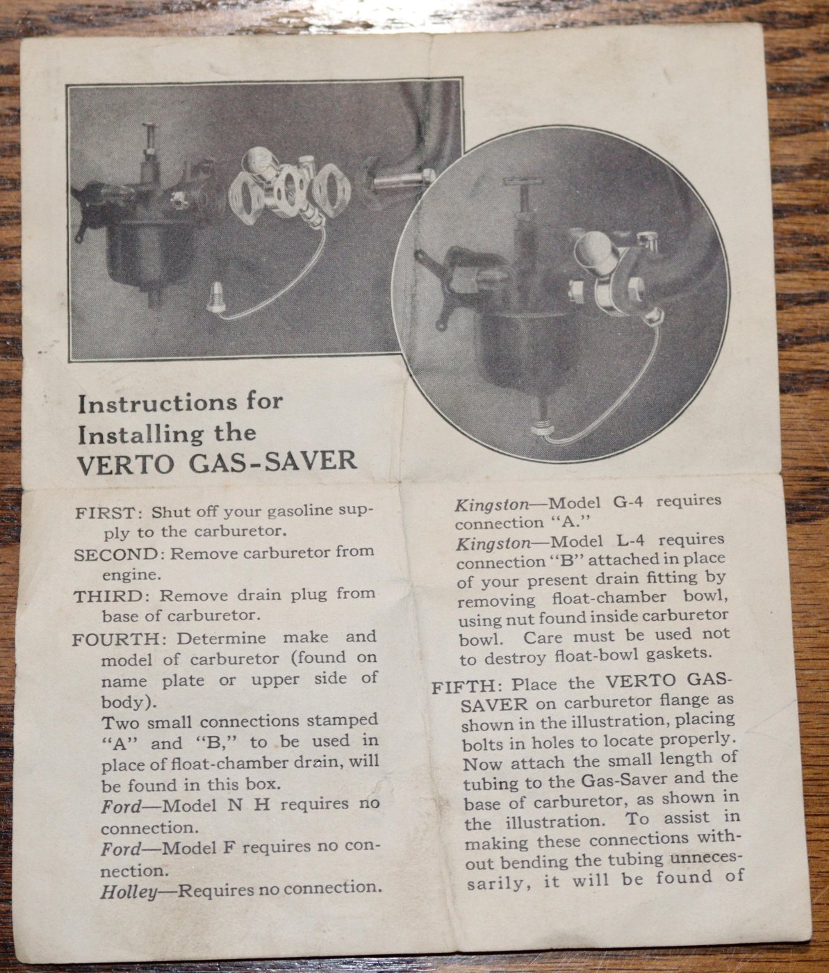 SPOKEN FOR ! - VERTO GAS SAVER FOR THE FORD CARBURETER TWO NEW OLD STOCK UNITS WITH ONE ORIGINAL BOX AND INSTRUCTIONS