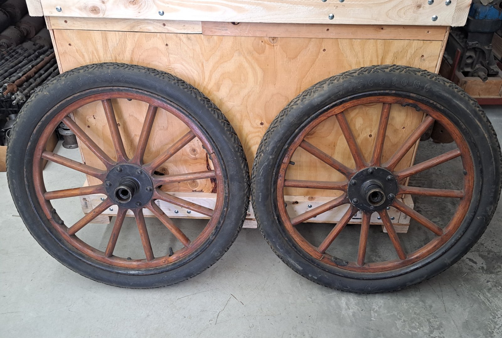 One pair of front (30x3) wood fellow wheels with Firestone Non-Skid tires. Overall condition is fair. Price for the pair WAS $400 NOW $300. Pick up is preferred. Can ship; however, will be a bit pricy. Mark Chaffin (951) 805-0928 SOLD