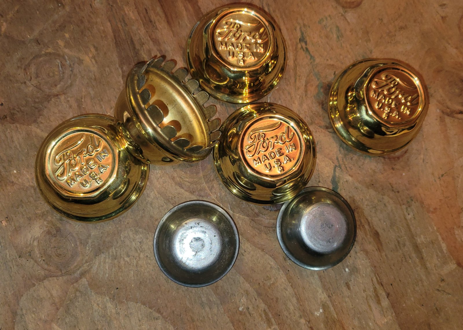 Set of five, 1926-27 wire wheels complete with front and rear hubs, front dust caps, 5 brass hubcaps, and lug nuts. These are in very nice condition and use 4.40/4.50x21" tires (not included.) They are available for free pick-up at the Portland Swap Meet April 5-7 at the Portland Expo Center. $900.