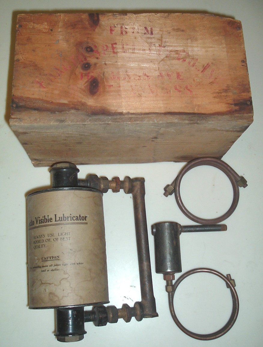 NOS Fracto visible lubricator accessory oil level maintainer. With original wood box. Missing a couple line fittings, instructions and wood box lid. $195 includes US shipping.