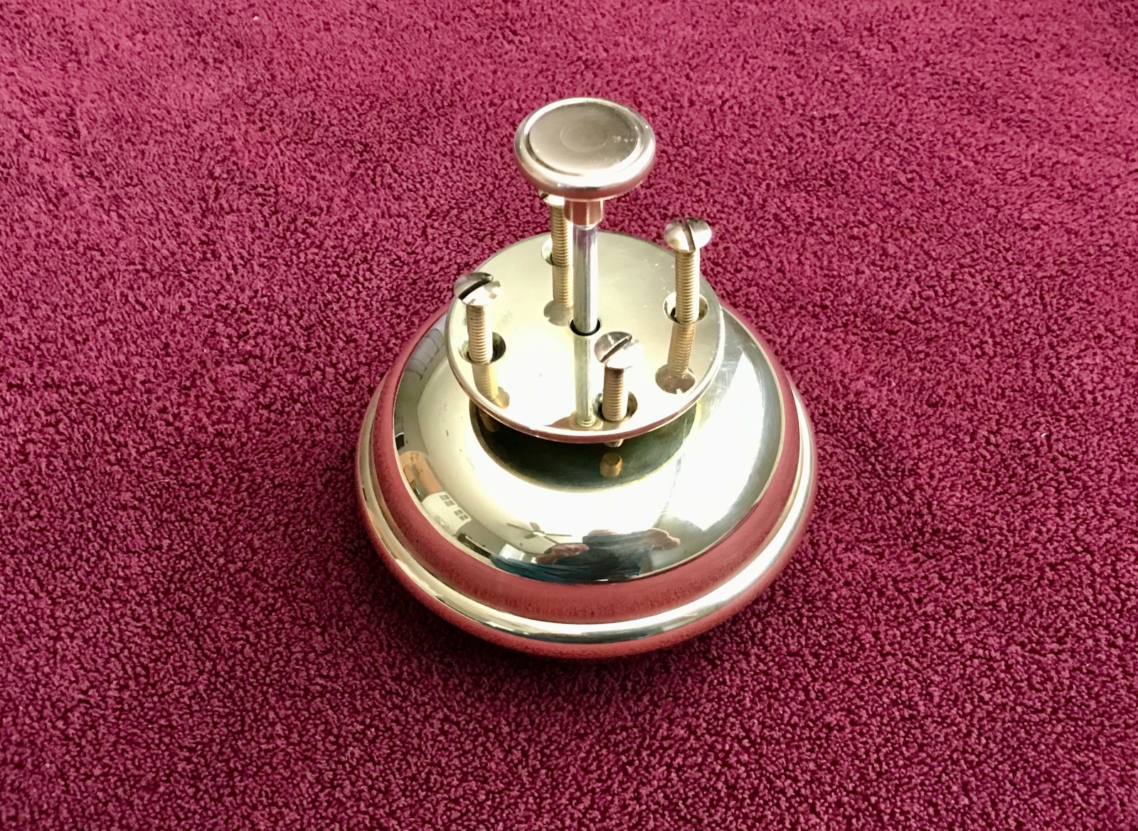 Here is an original T era Bevin polished brass Bermuda bell. It has a nice polish, no dents or cracks. It works great, very loud DING DONG! when plunger is depressed. It has a 1/8 thick polished brass mounting plate, brass plunger knob, and brass screws. Very clean. Ready to mount under your floor board. I have one on both my Ts. Great fun. 275 includes shipping.