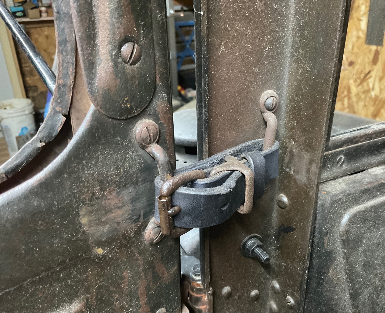 I've had several closed cab rigs in the shop for odds & ends repairs and not one had door check straps so I had some done up using the remnants of one using similar webbing material & the length I kinda judged by the door position. These fit original & repro footman loops. I have a limited number of pairs and am asking $25.00 for a pair including a small flat-rate Priority Mail. Drop me a note through the Forum, please if interested.