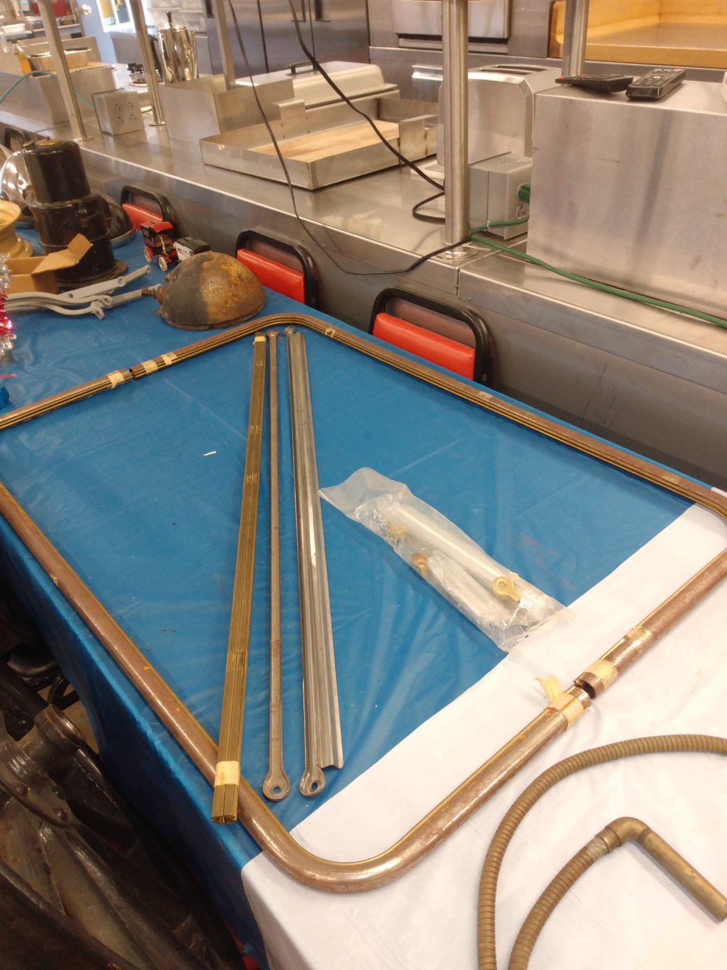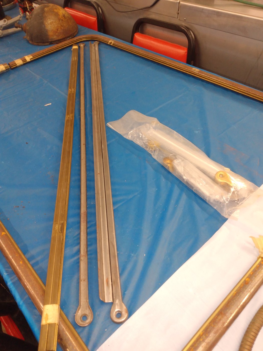 Purchased new years ago, things have changed. Complete frame with glass clamps filler blocks. Frame has brass glass channel installed. Windshield divider for 14 only, and brass glass channel for divider. No hinges. Price paid for these was 760.00. will sell for 640.00 plus shipping. Measurements are top 41 1/8 x 12 3/4. Bottom 41 1/8 x 14 3/4 ctleonard64@gmail.com