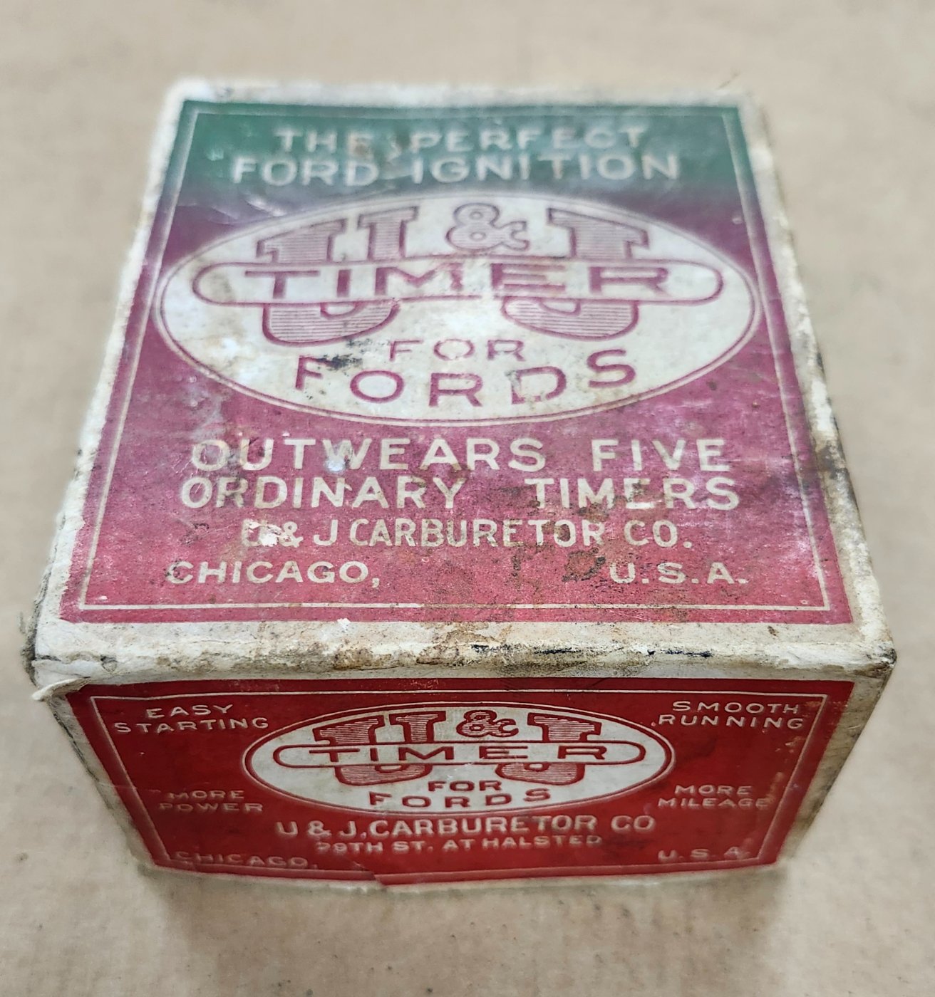 Here is a interesting item for the timer collectors, an U&J timer box. Actually it's just the box top. This is the cover or lid that slides down over box it's self. Sorry this is all I have, no timer or the inside of the box. This shows shop and handling wear but what a great display piece for your timer collection. Buy it for $30.00 plus shipping. Please emails only.