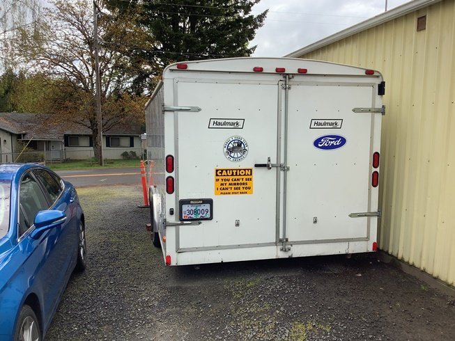 Have 22ft long by 8ft wide Haulmark Trailer set up inside as part storage was a Model A and T ford parts vending Trailer is 7100 gvw on tag has Oregon Title get into the Swap Meet season in style asking $8500.00 give me a call Matt 503-824-268one