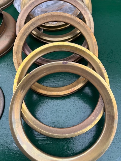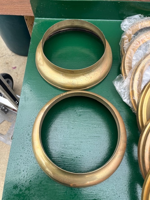 New spinnings for E and J 666 brass headlights. Doors, $40 each, bezels $35 each, back, $20. All plus shipping. kdmks AT att.net.