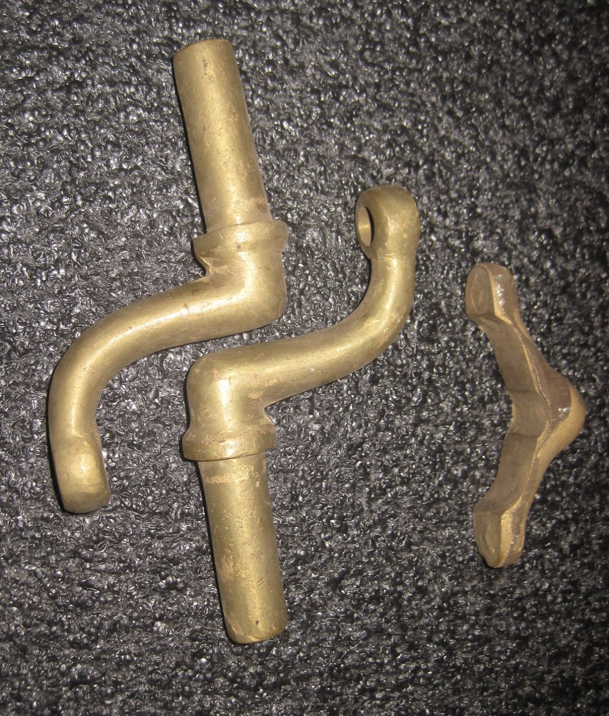 For Sale: A bunch of rough unmachined yellow brass castings for early Model T's: Fuel-air mix escutcheons, $3 each; Radiator mounts, $4 each; "1911" style top brackets, $5 each; "1909" style top brackets $5 each, Hood handles, $8 / pair; coil box mounting bracket (one only) $5, part of a tail light bracket, $2. Shipping not included. Thanks for looking!