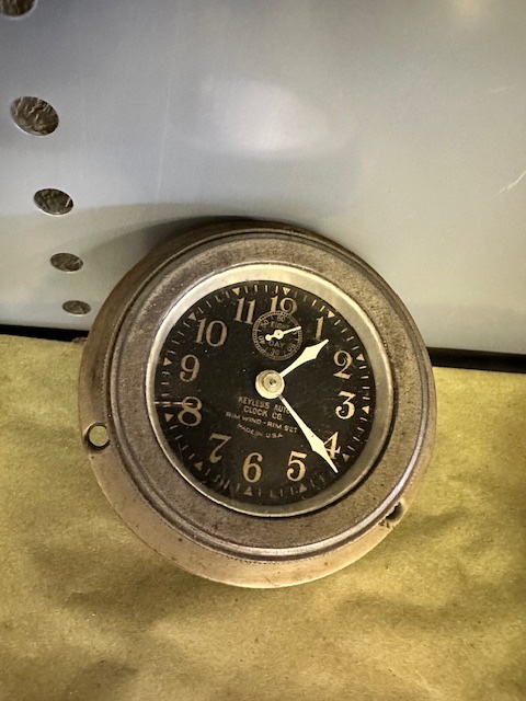 Nice original rim wind Dash clock made by the “Keyless Auto Clock Co”. It is a rim, wind and rim set clock. Could probably used cleaned and oiled, but it is running. I wound it Friday morning around 7 o’clock and it was still running Sunday afternoon. Nice original face and hands.