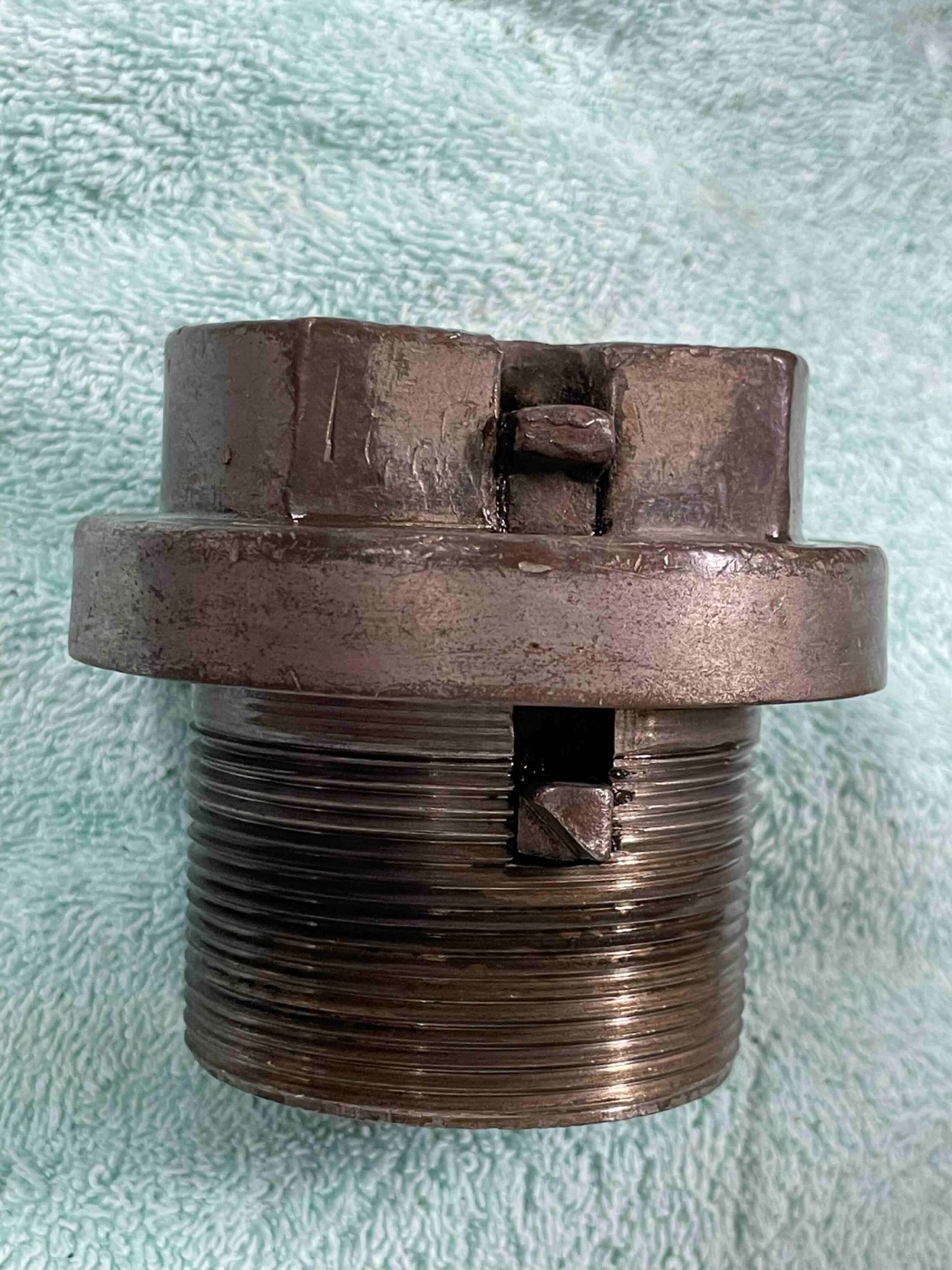 Pair of Budd brand front wire wheel hubs with hubcaps off an Overland, great candidates for conversion to Model T Ford by welding on to rear Model T wood wheel hubs, nice shape with good threads and not beat up faces, natural pair left and right. $375, domestic shipping $22.