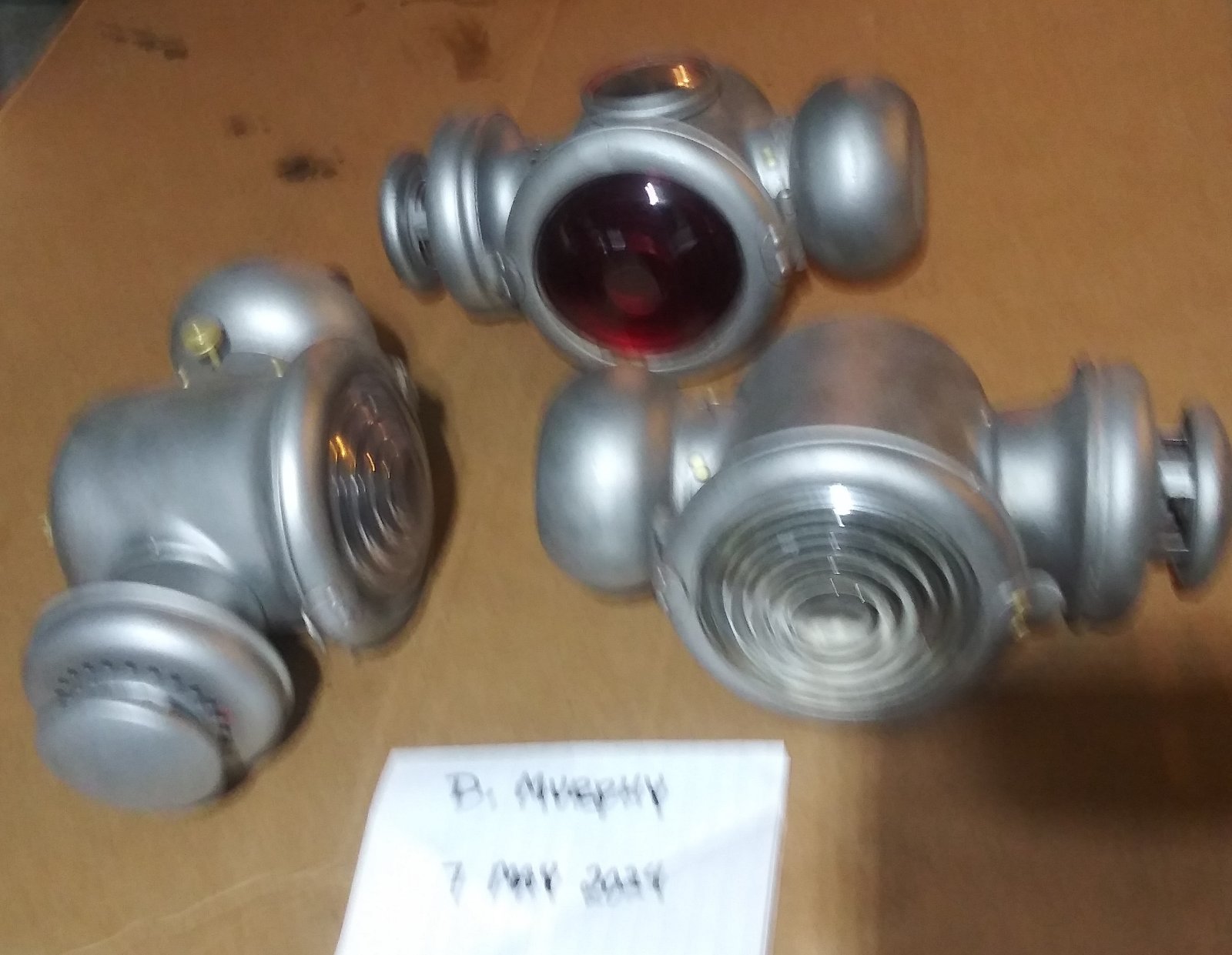Was going to paint these and put them back on my speedster but going another way. Figured I would not paint them in case the next guy wanted them in something other than black. 2 side lights are lanterns and rear has been converted to electric. Sorry about the 1st pic. $150 for all 3 plus postage.