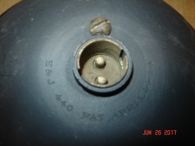 With 1915 and 1916 headlamps, you need to pay attention to the area around the plug/socket. Many are flattened around the plug/socket just like the millions of later headlamps. The E&J 440s have their information stamped there, some other's do not. Some other manufacturers are completely rounded from the bucket to the plug/socket. Many of those do not have the manufacturer's information on them. I have seen a few 1915/'16 headlamp buckets that had a manufacturer's stamping up about halfway between the socket and the bezel. They are not stamped very hard or deep, and many of the stampings are very difficult to see, let alone read. Often, when repainted, that stamping disappears forever. I think I still have one that the circle can clearly be seen, but not read.