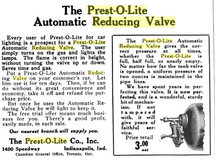 Re: Prest-O-Lite regulator - earliest style - Prestolite