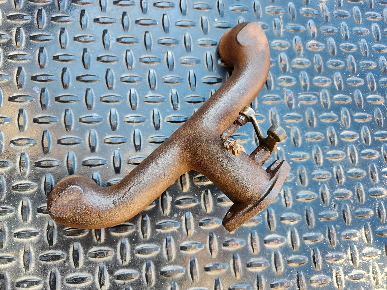Here is an original, cast iron, updraft manifold with the "L" linkage. This is in good condition and is made for a Model T stock block. One of the bolt holes has been enlarged but still works well.