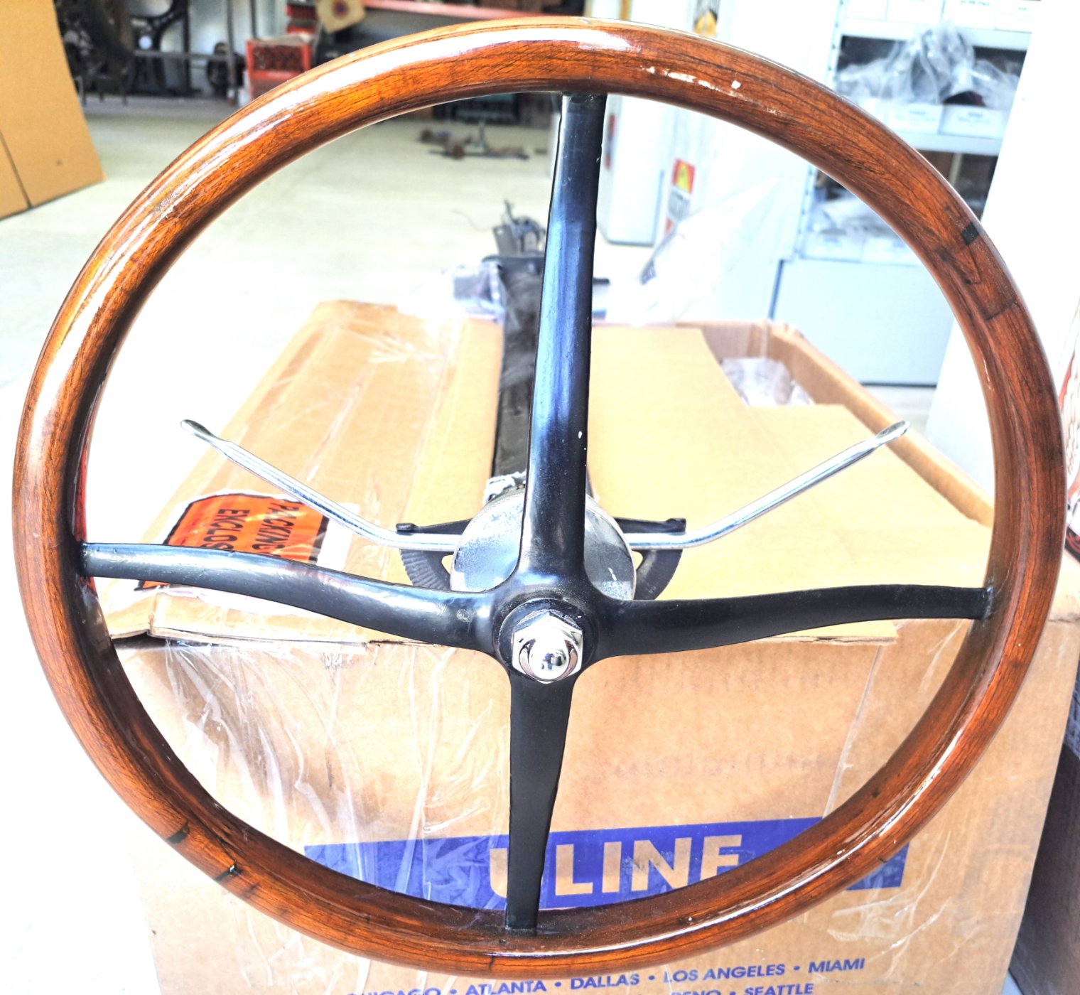 Very nice large accessory steering wheel and spider. ID measures 15". OD measures 17". Includes chrome steering wheel nut. Price WAS $200 NOW $175 plus domestic shipping. Mark Chaffin (951) 805-0928 SOLD