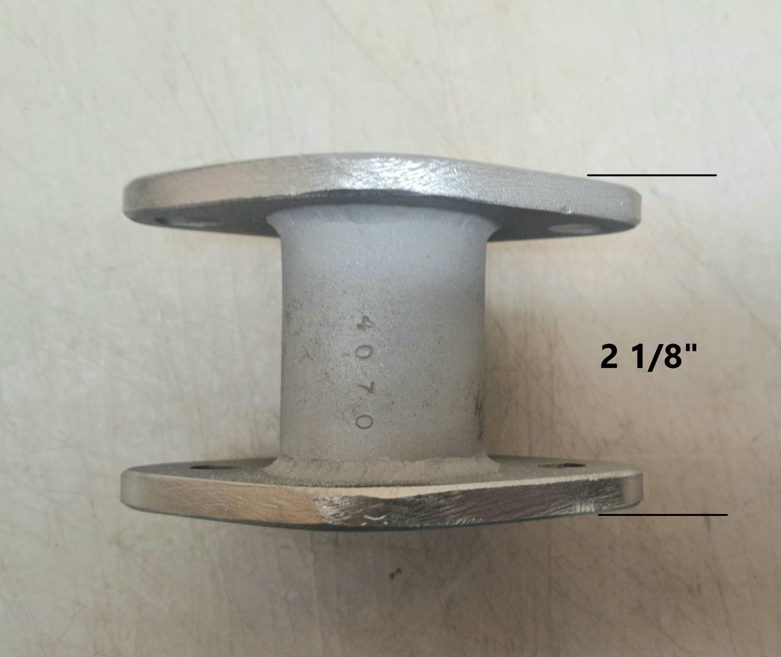 Unusual intake manifold extension / adaptor marked "4070". Dimensions are as indicated below. Price WAS $25.00 NOW $20.00 plus $8.50 domestic shipping. Mark Chaffin (951) 805-0928