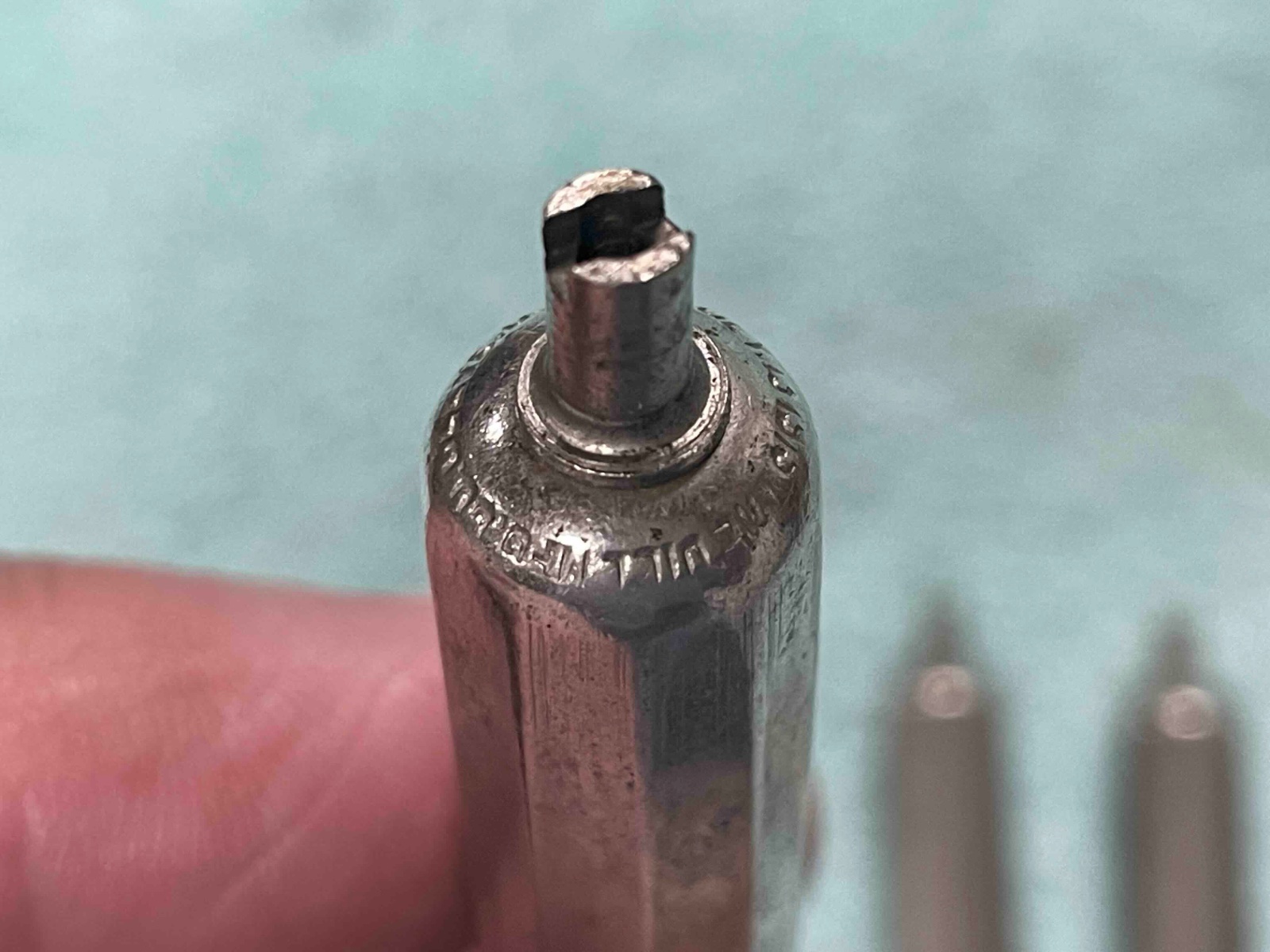 Set of 5 very nice Dill brand tire tube stem covers, these are made of brass and nickel plated.