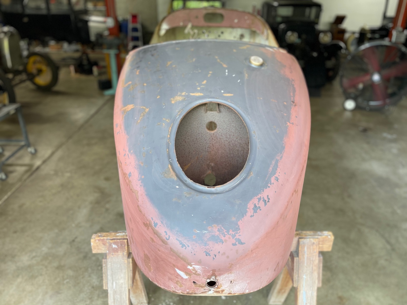 Early production Mercury speedster body number 204. Body comes with gas tank risers and straps. Mercury steering column clamp is also included.