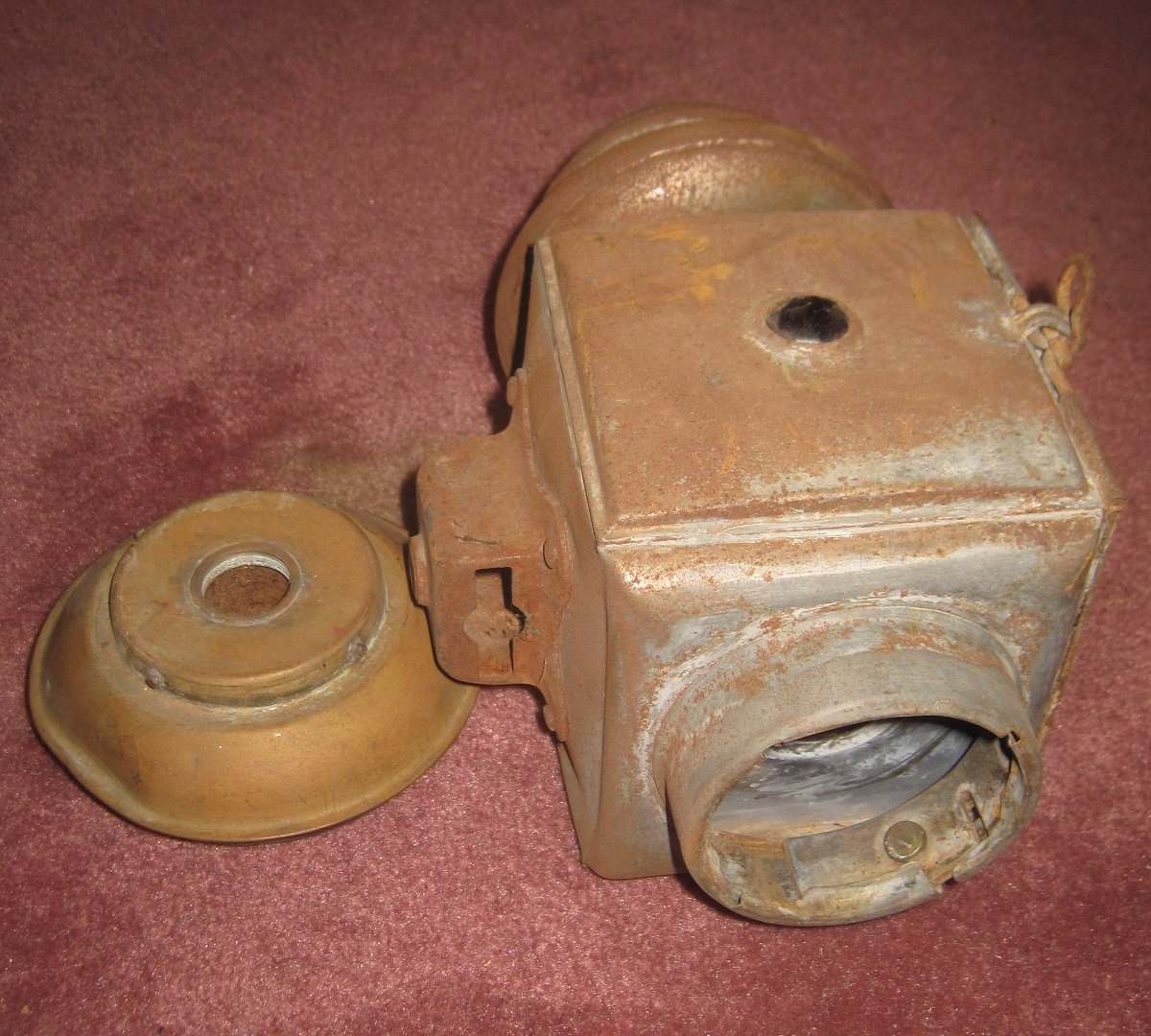 FS: One restorable Jno. Brown 110 lantern. It will need a total restoration, the burner is missing, there's a dent in the back, the reflector plating has worn off, and the glass will have to be replaced. On the plus side, the top, while not perfect, is better than probably 80% of the Jno. Brown lights I've seen. Also includes a fount that is not perfect but usable. Asking $35 not including shipping.