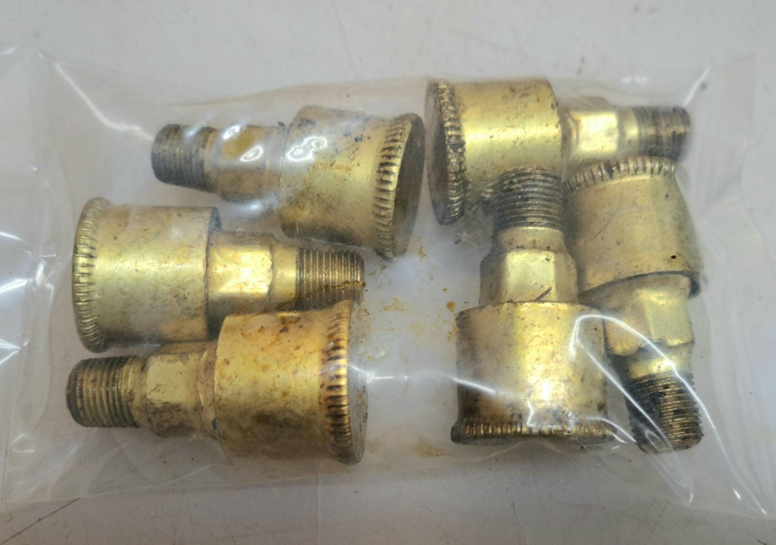 One lot of six brass grease cups for the rear axle and driveshaft. These are no longer available from the vendors. When available, they were $9.95 each. Get this lot of six for $50 plus $8.50 domestic shipping. Mark Chaffin (951) 805-0928