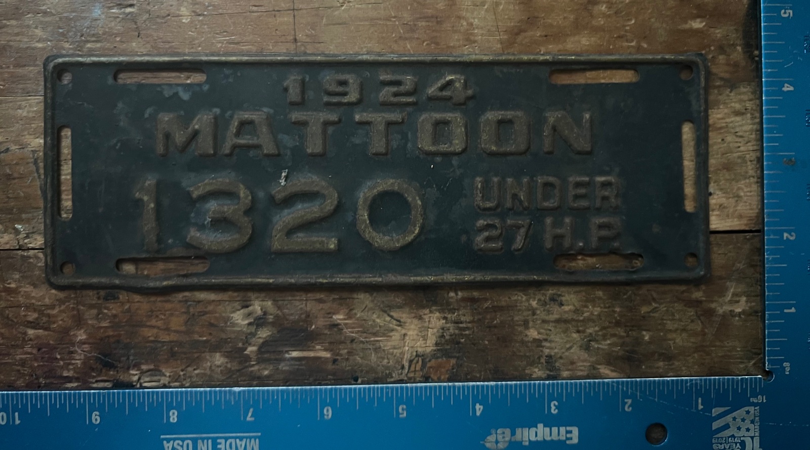 Re: FS: 1924 Mattoon, ILL under 27 hp plate