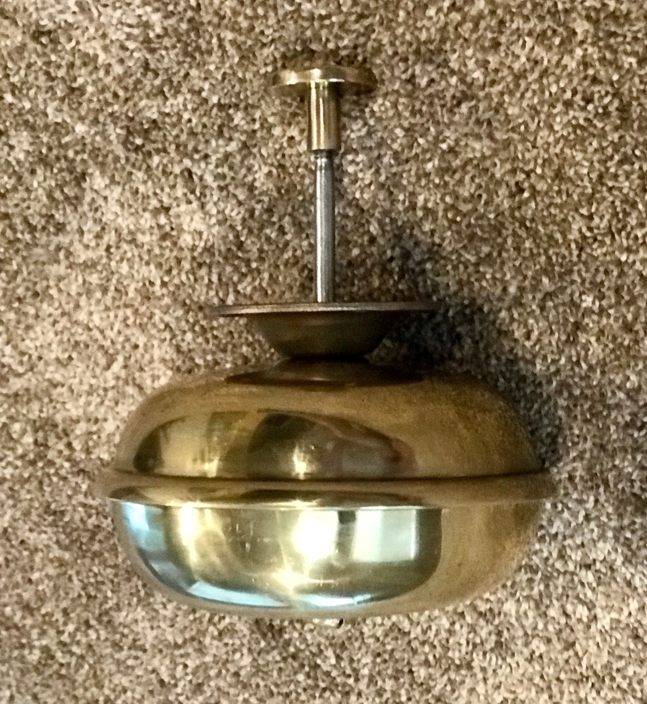 Here is an original T era Bevin polished brass Bermuda bell. Heavy thick brass. It has a nice polish, no dents or cracks, just a few small nicks here and there from actual road use under a T. It works great, very, very loud DING DONG! when plunger is depressed. Holds the fading tone after ringing, something only original bells can do. Very clean. Ready to mount under your floor board with 4 screws and nuts. 5.5 diameter bell. I have one on both my Ts. Great fun. A must have noise maker! 200 includes shipping.