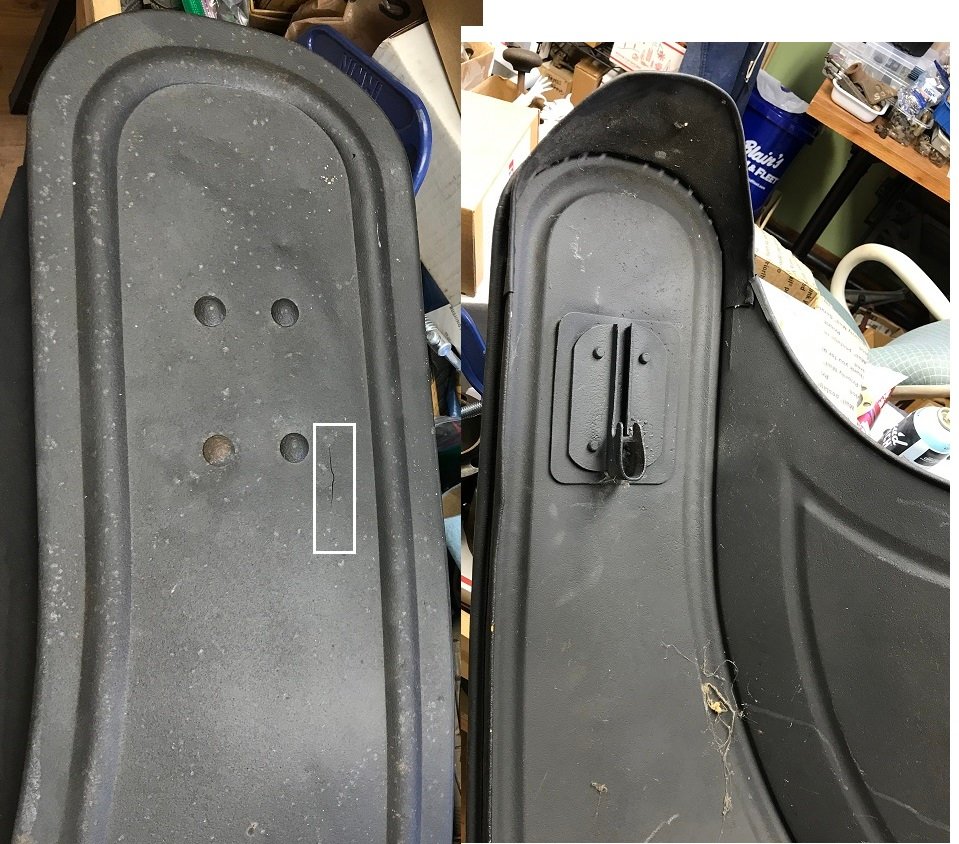 I believe this is a 1915 right front fender. A bit uncertain about the shape of the hood under the nose of the fender. Has some rust through an the running board end and a small crack around the fender bracket. Also there is some overall roughness to the finish, zoom in to see. $200 not sure about shipping this. Is in Coal Valley IL, just off I-80 in US Hwy 6 Also have a 1915-15 fender for sale https://mtfca.com/phpBB3/viewtopic.php?f=5&t=45303