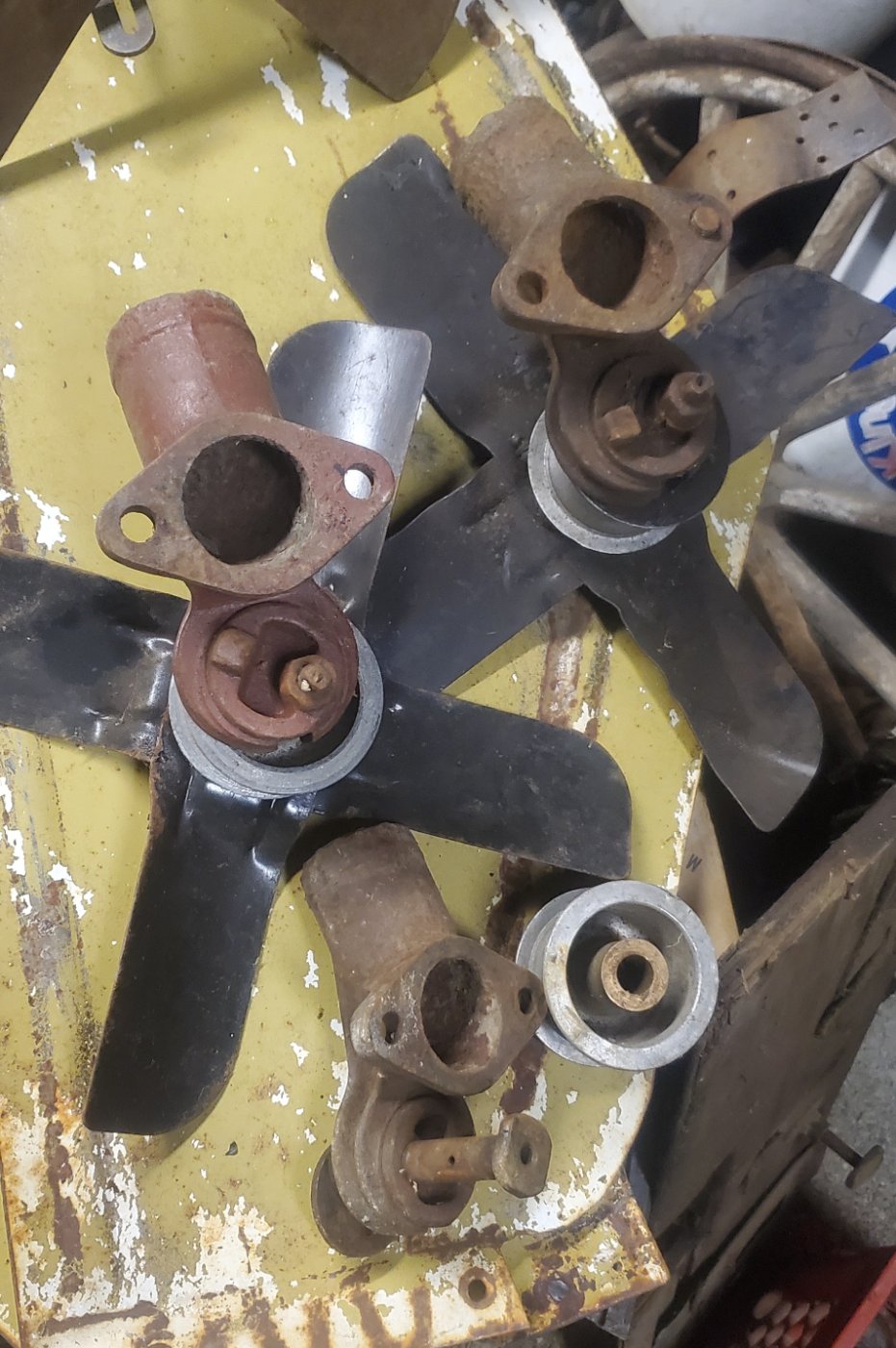 Fan mount / water outlet $45 each one missing fan 35$ plus the ride will probably need bushings one has pitting round the hos connection