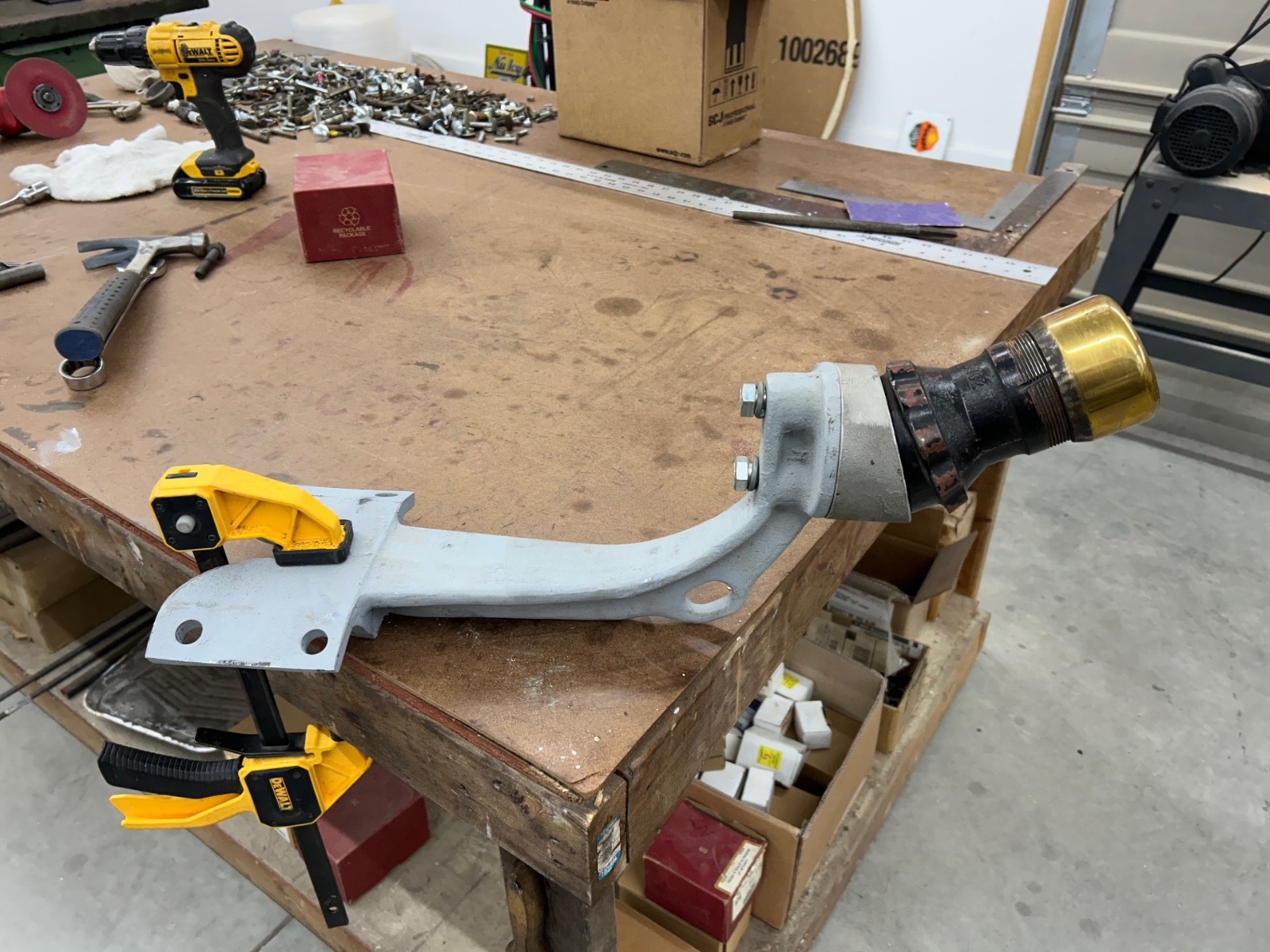 Carrier for Buffalo / House complete with tapered spacer to allow mounting on roadster, touring and speedster by simply rotating pieces to desired angle. Has a nice House cap missing lock spur. Sold.