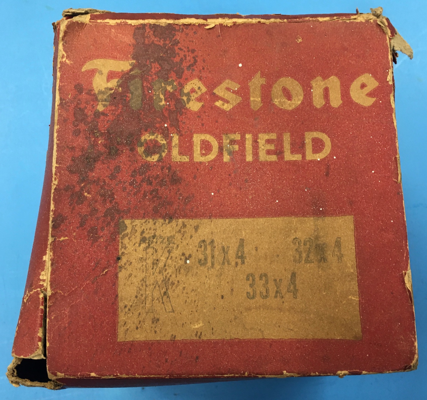 SOLD: Firestone Oldfield nos in box Red Rubber inner tube w/ Schraeder # 725 stem. Buy it as a vintage display item or for the NOS stem & hardware. The tube itself looks awful darn good, but no guarantee on a 100 year old inner tube! $25 & Free Shipping inside the USA. Email if you want it. Please do not post here or pm. Thanks.