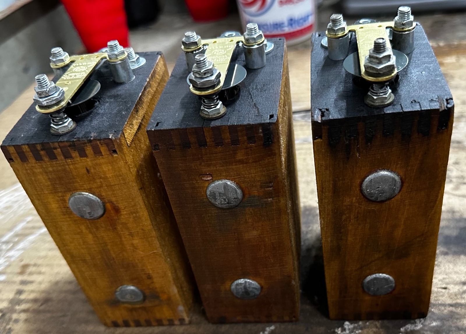 Believe it or not, picked these 3 coils up at an antiques store. They looked decent. After replacing all 3 capacitors, re-tarring, and installing new points, they adjusted very well on the ECCT. Freshly cover in linseed oil.