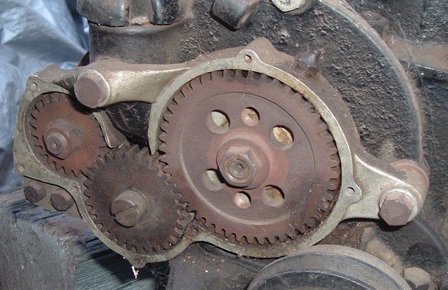 Looks like you need more than the cover. The case has been cut away ( above the center gear) so this will mount on a later non-generator timing gear cover that the oil filler extends down farther than earlier ones. All the lube will quickly exit these 3 gears thru that opening!