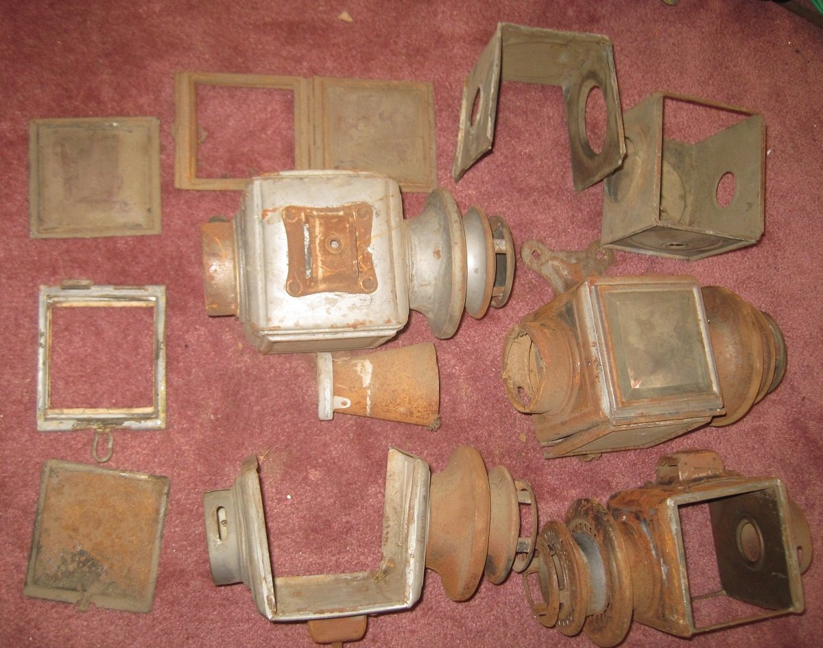 FS: A pile of parts for Victor #2 Side lights, as used on Model T Fords ca. 1914. Included are one with a Ford script top, one with a plain top and two that have had the tops cut out for whatever reason. No founts or burners. For parts or restore. You pay shipping and they're yours.