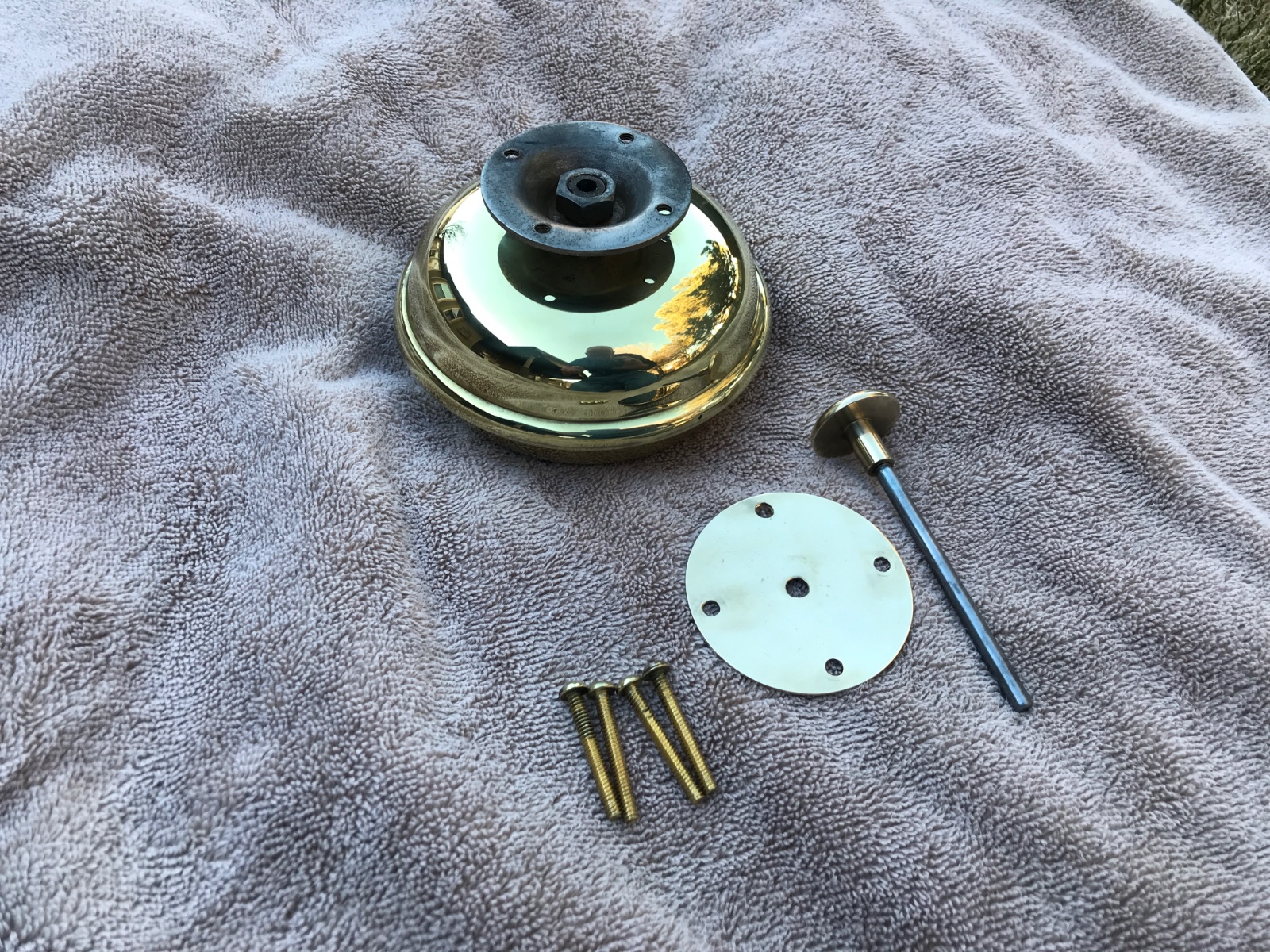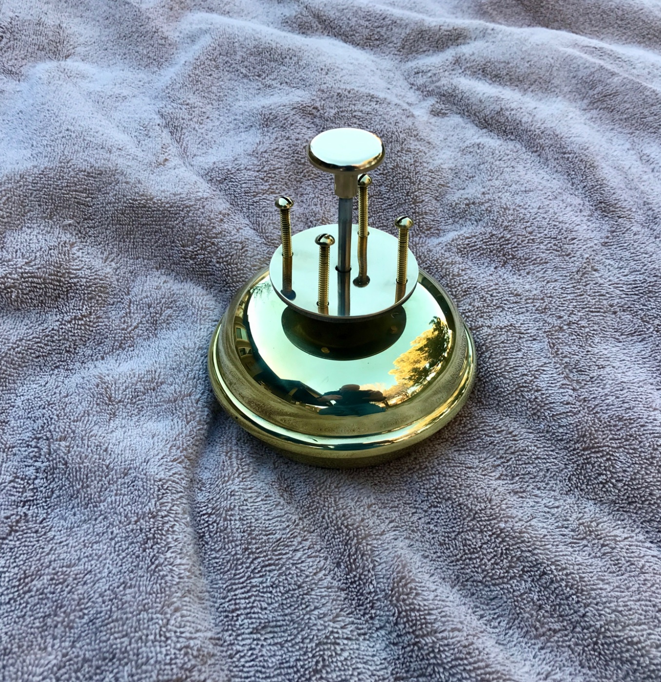 Here is an original T era Bevin polished brass Bermuda bell. Excellent condition. Heavy thick brass. It has a nice polish, no dents or cracks. It works great, very, very loud DING DONG! when plunger is depressed. Holds the fading tone after ringing, something only original bells can do. Very clean. Ready to mount under your wooden or steel floor board with 4 screws and nuts. 5.5 diameter bell. I have one on both my Ts. Great fun. A must have loud noise maker! 275 includes shipping.