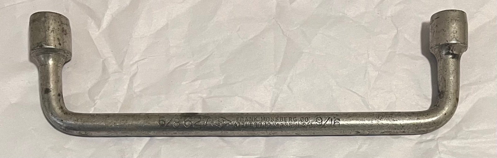 Original Frank Mossberg Co. #627 Wrench. Speciality tool which is used to remove the Carburetor and Generator on Model T Fords. 9/16” and 5/8” 6 point ends $35 plus shipping. Lang’s 1-800-872-7871.