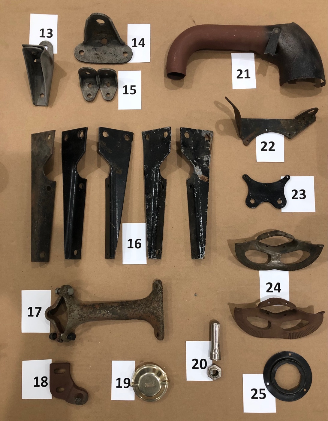 Center bracket & the 1 left of center are sold 16)Firewall mtg brackets, 1917-23 $5 each