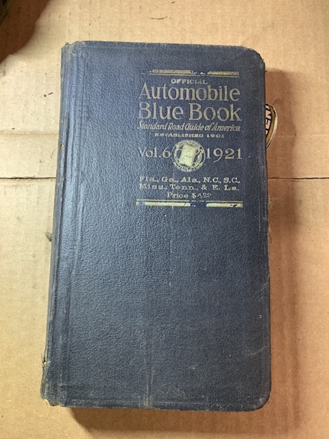 Here is very good 1921 Automotive Blue Book. This is NOT a book about car value!! It is a tour guide for how to get from point A to point B when there were no road signs.