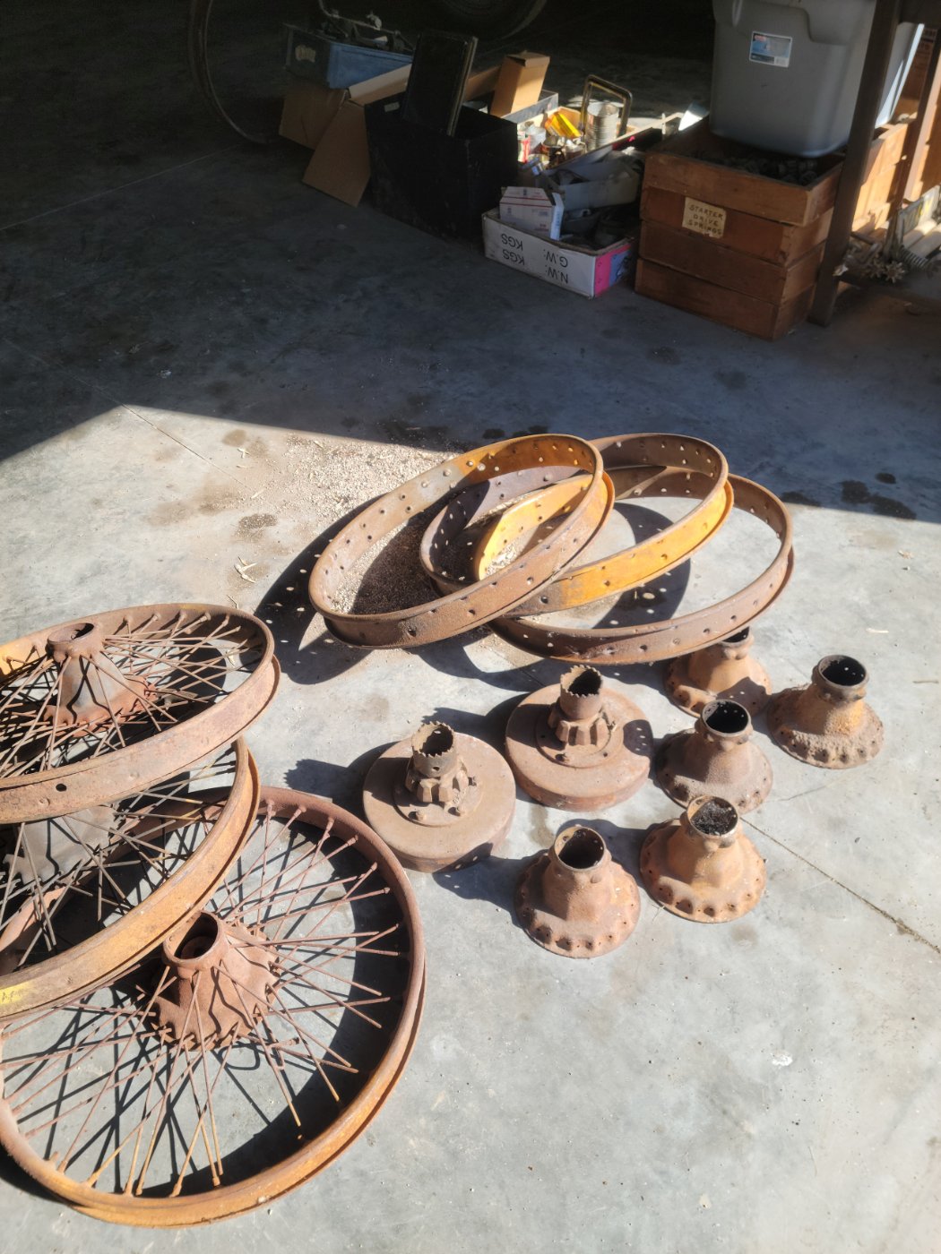 For Sale, wheel parts and 2 rear hubs probably from a small Overland. NO CAPS. $400 Moorhead MN Steve 701 212 5009