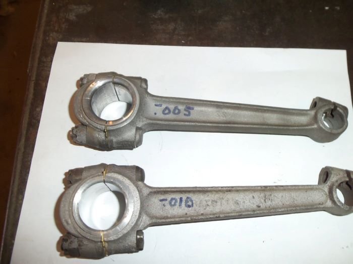 also have 2 "HEAVY" connecting rods that are re-babbitted and bored to -.005" diameter and -.010" diameter ... the -.005 would be a simple fitting process to use in an original engine with some wear on the rod journals ...Gene French
