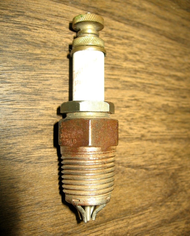 Here is a set of five Bethlehem "Five Point" spark plugs with 1/2 inch pipe thread that fit a Model T Ford. Note the unusual four individual ground terminals that surround the single main terminal, hence the "five Point" designation. One of the plugs is in an original box, the other four are in reproduction boxes.
